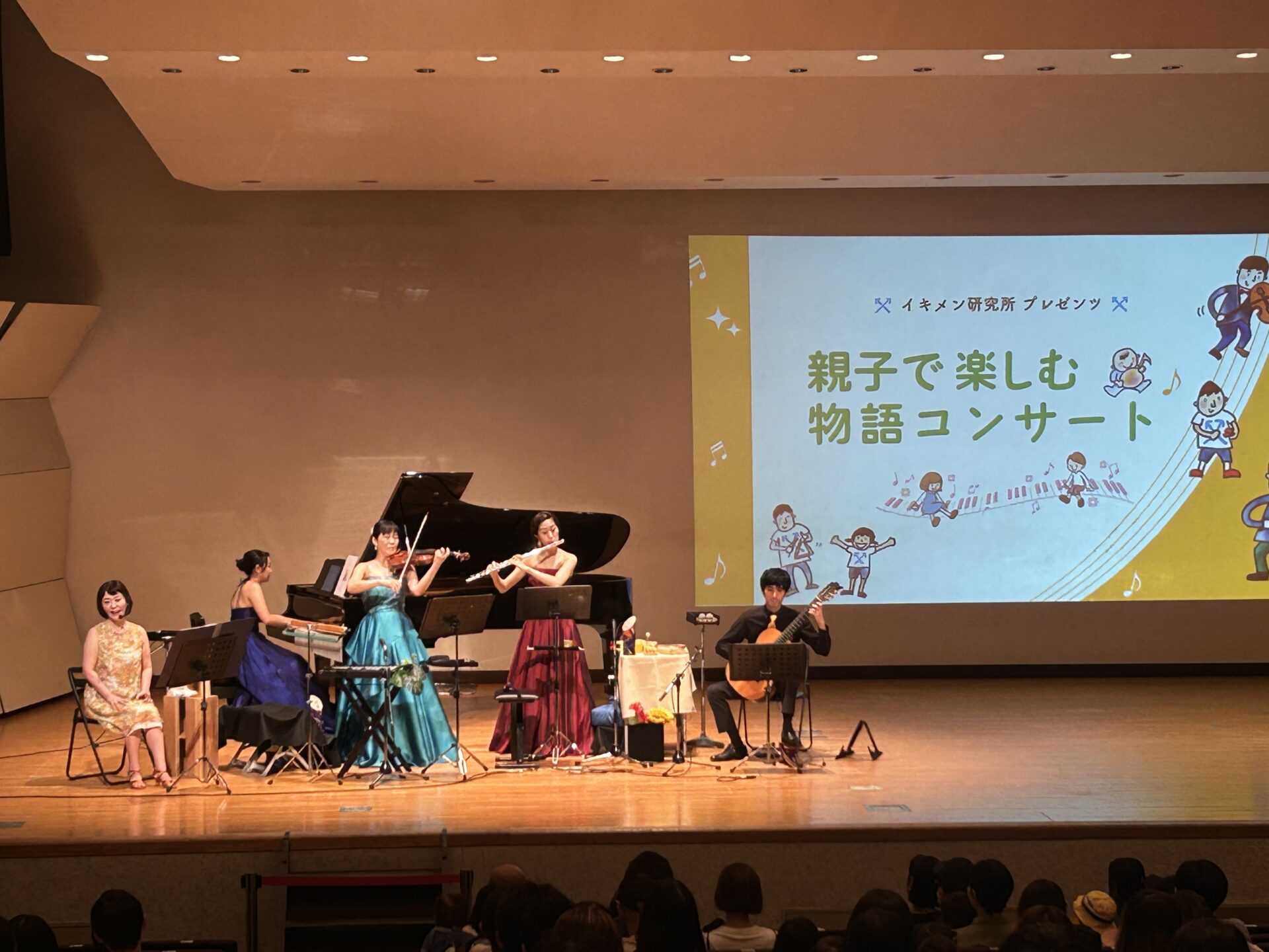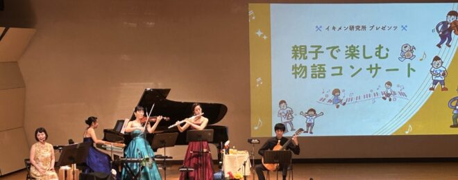 「家庭でも地域でもイキイキと過ごすパパ達」の集まりであるイキメン研究所の企画として、0歳のお子様から参加できるコンサートを開催しました。演奏会全体を物語にみたて、ご参加のみなさんと一緒に冒険するというストーリー仕立てのコンサートで、たくさんの方にご参加いただきました。