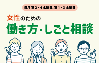 | 相談方法 | 来館・オンライン(Zoom)・電話(通話料は利用者負担となります) 国家資格キャリアコンサルタントの女性相談員がご相談に応じます。(守秘義務遵守) |